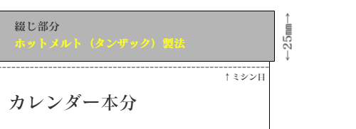 | ご注意 | タンザック製本カレンダーのサイズは、綴じ部分25ミリまで込みのサイズで表記をさせていただいております。 |