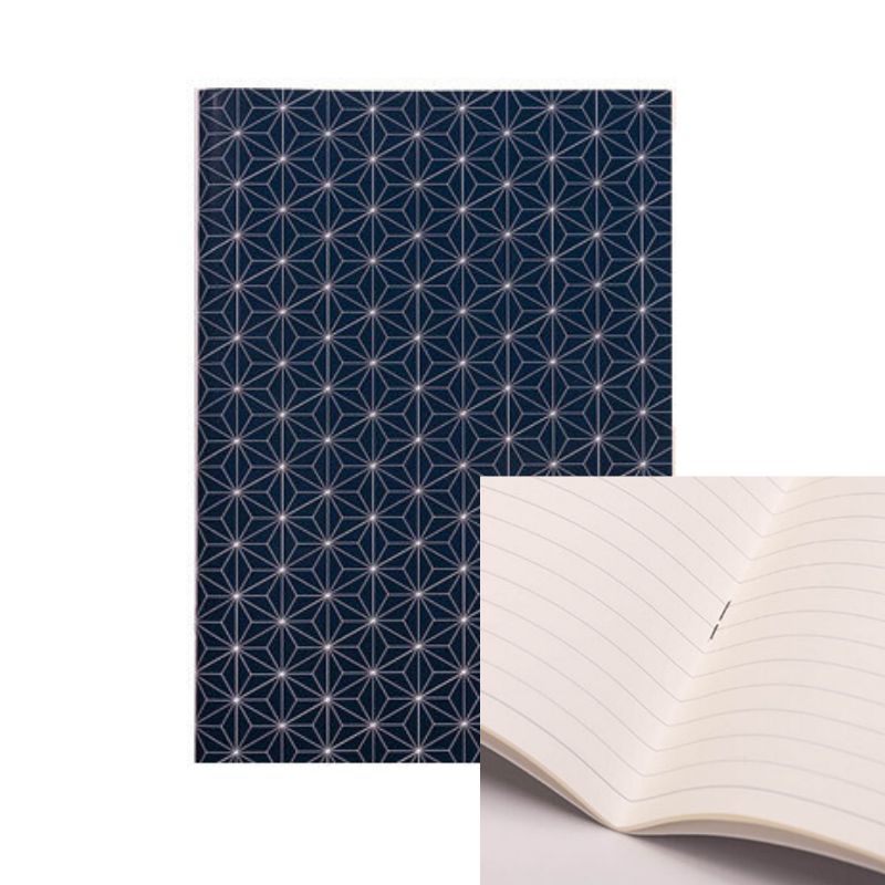 針金で綴じたノート。中綴じとは表紙と中身を開いた状態で重ね、中央部分をホチキス留めのように綴じる最も一般的な製本方法です。すっきりとした見た目に加え、コストパフォーマンスと実用性の高さが特長です。カタログやパンフレットによく使われます。抜き型を使って自由な形にくり抜くこともできます。