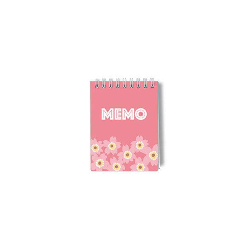 1枚1枚のメモ用紙をワイヤーリングで綴じたメモ帳。中身の紙数は上質紙70㎏で80枚、上質紙55㎏で100枚まで対応できます。ページをぐるりと360度回転して折り返しの状態で使えます。ゴムバンドを付けたり、ミシン目を入れたりと色々なオプション加工が可能です。